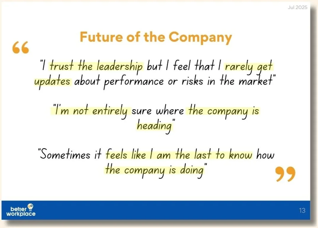 You’ll also receive a slide deck to present back to your employees, show you’re listening to their feedback and have actions planned